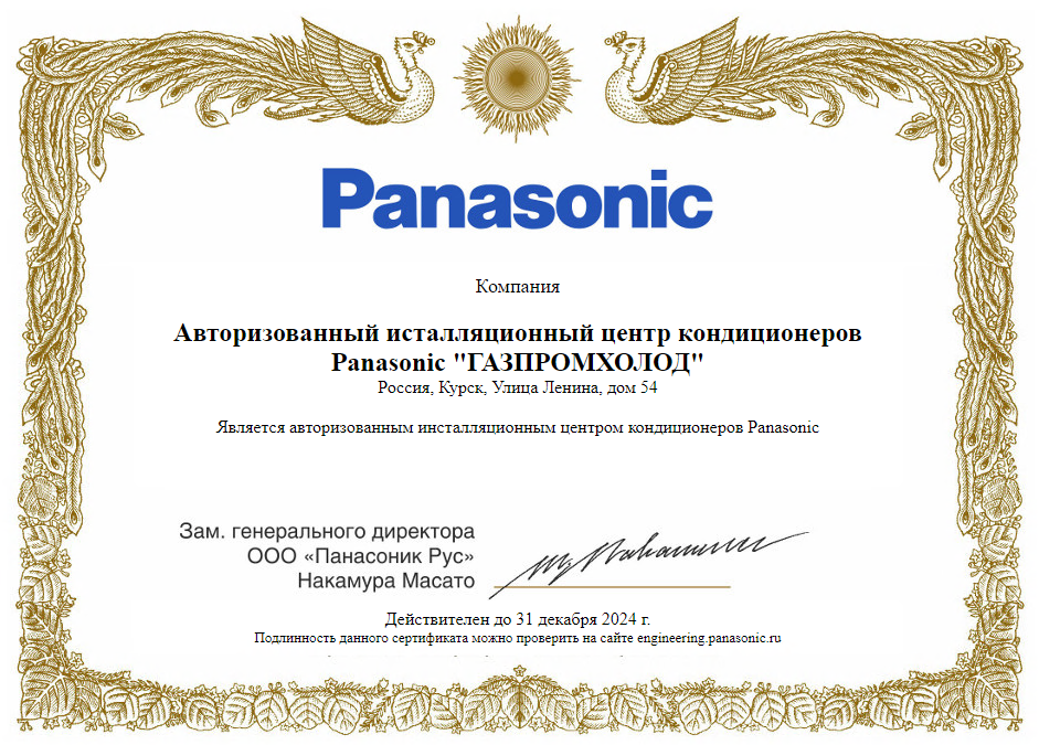 Являемся единственным авторизованным инсталляционным центром кондиционеров Panasonic по Курской области. При монтаже, обслуживании и покупке кондиционера Panasonic у нас, вы официально получаете 3 года гарантии не только на монтаж, но и 3 года гарантии на сам кондиционер, а также 5 лет гарантии на компрессор.
